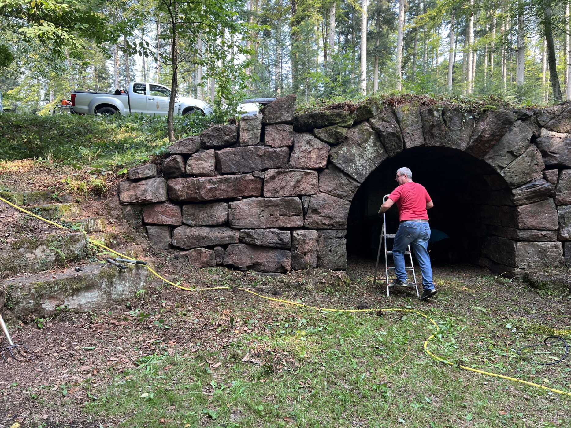 Die historische Stätte, das Häfnet-Brünneli, fristete Jahrzehnte ein etwas trauriges Dasein, denn im Laufe von Jahrzehnten hat sich viel Gestrüpp oberhalb des Brünneli und auch davor ausgebreitet. An der Steinmauer und auch innerhalb des Gewölbes haben sich Moose und Flechten festgesetzt, so dass alles unansehnlich geworden ist. Die Tische und Bänke aus Massivholz sind morsch geworden und luden nicht mehr zum Verweilen ein.